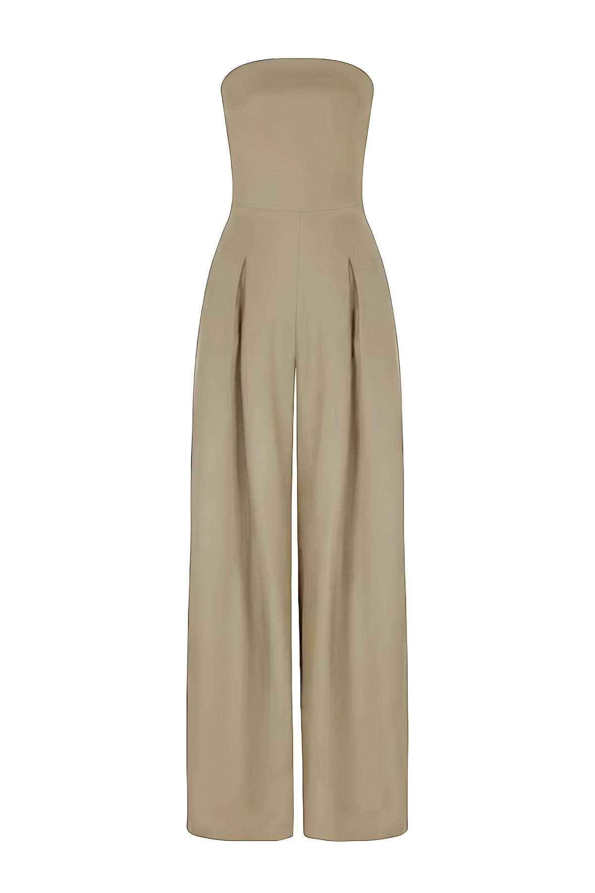 Step into sophistication with this strapless wide-leg jumpsuit, a refined expression of modern elegance and timeless allure. Crafted from a smooth, flowing blend that drapes beautifully, it offers both comfort and style, perfect for evenings, formal occasions, or chic gatherings.